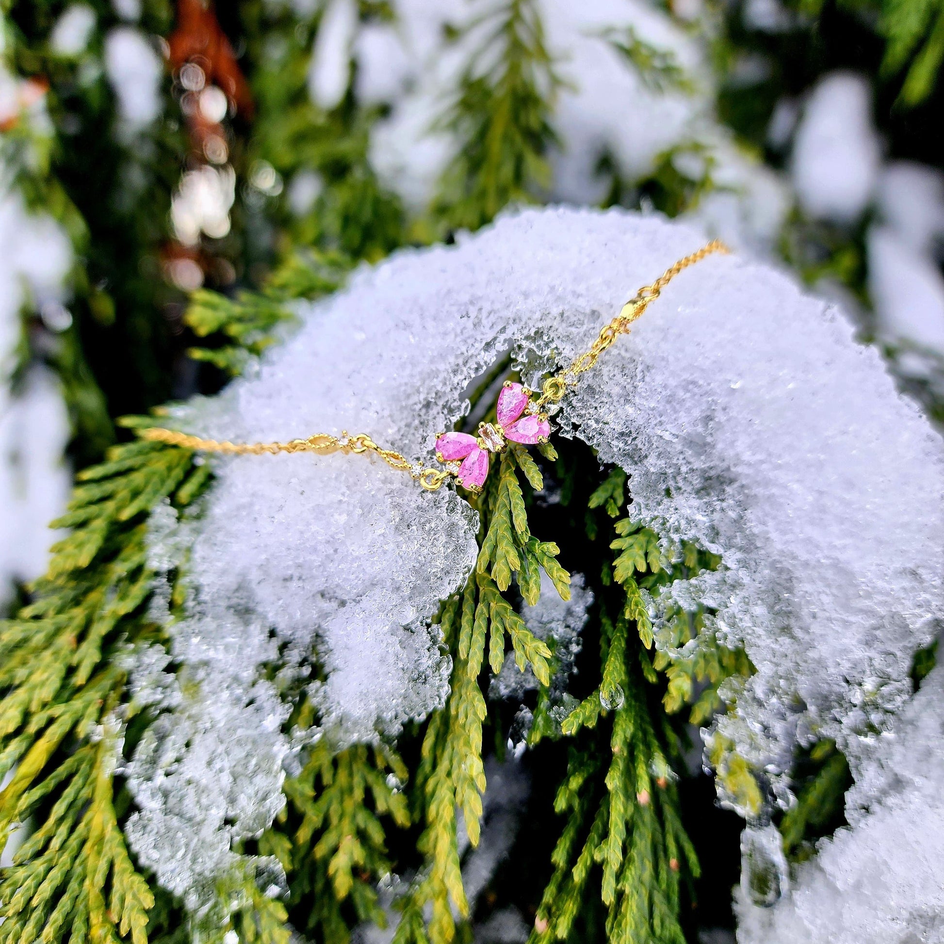 A silver/Gold-tone chain with a pink crystal butterfly centerpiece and sparkling CZ stones.