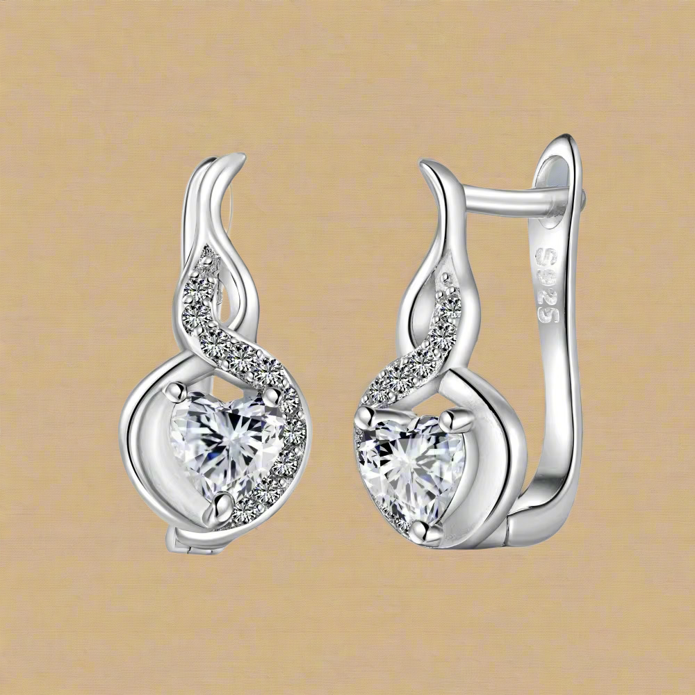 Featuring a heart-shaped gemstone embraced by a delicate swirl of pave stones, these 925 silver earrings add timeless elegance to any look.